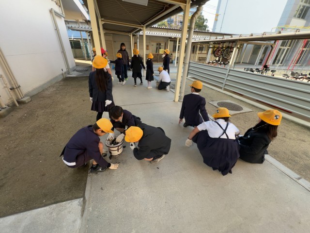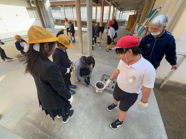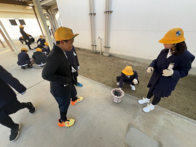 2月12日の1時間目と2時間目を使って、七輪の火おこし体験をしました。