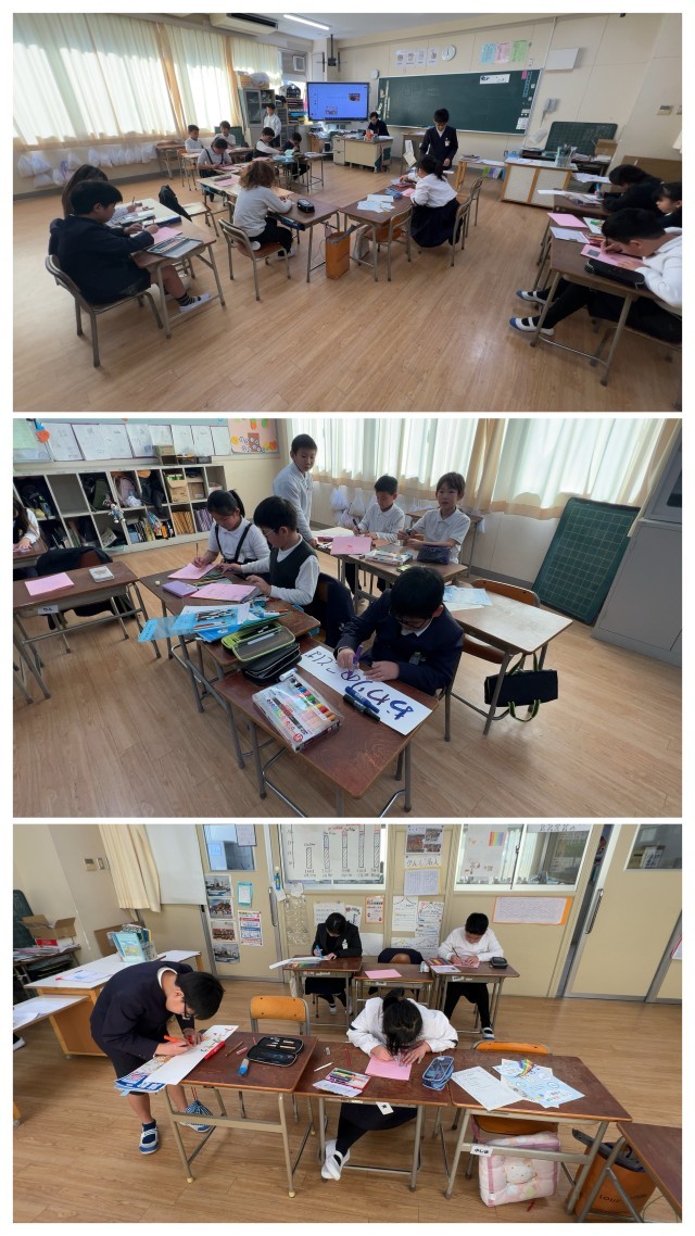 2月17日の3時間目は、国語の授業で、2月19日の授業参観の招待状を作りました。