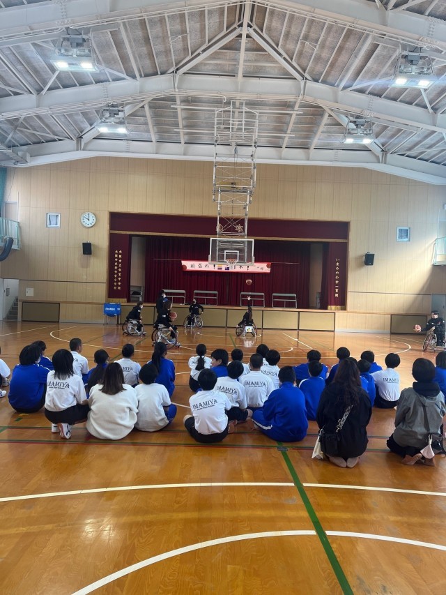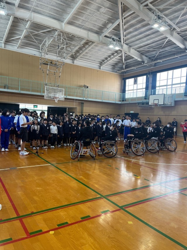 本日2・3限目に7年生では、女子車椅子バスケットボール日本代表チームとの地域親善交流会が開催されました。