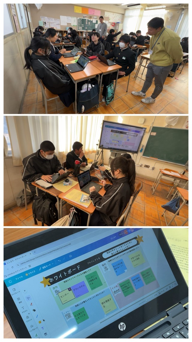 2月18日の1時間目は、今まで学習してきた内容をCanvaを使って意見の取りまとめをしました。