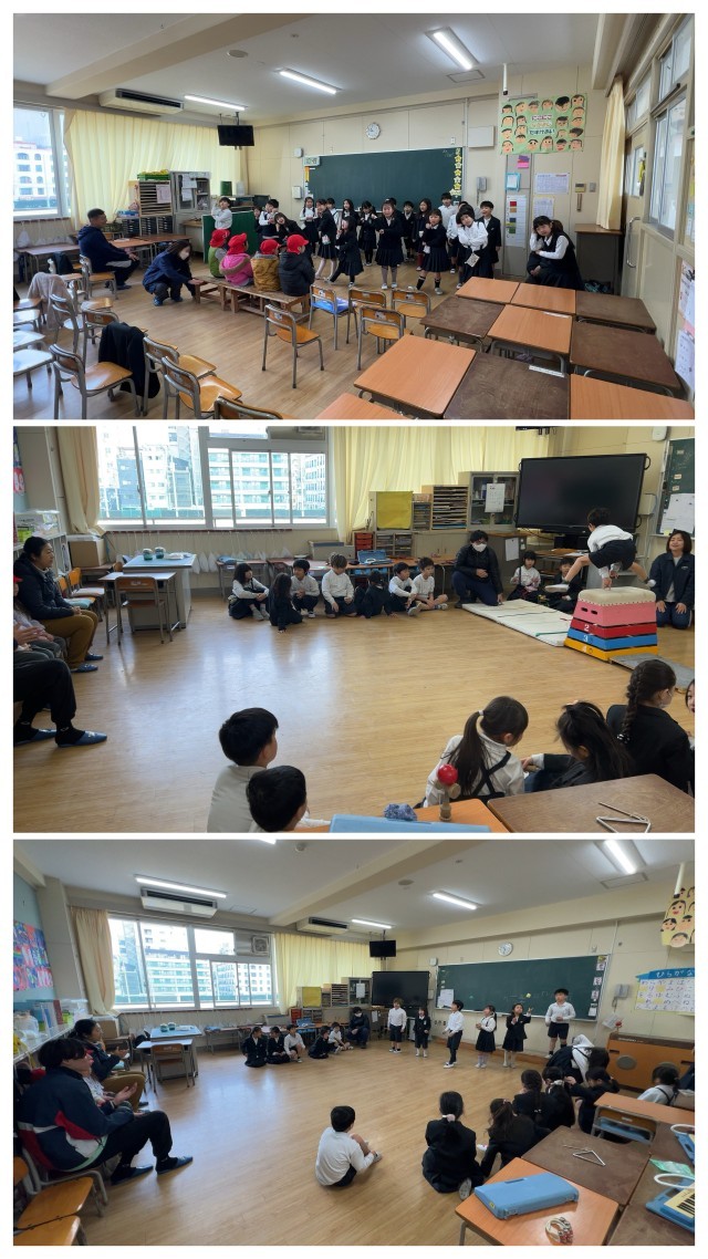 その後、みんなで一緒に体育館や運動場、ほかの学年の教室など学校内を見学しました。
