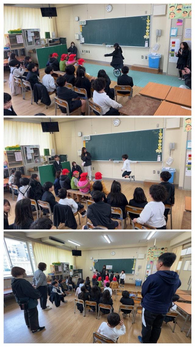 1年生のみなさんが、園児のみなさんの前で、小学生になってこんなことができるようになったよと、なわとびや跳び箱、音読、一輪車、合奏、歌などを披露しました。