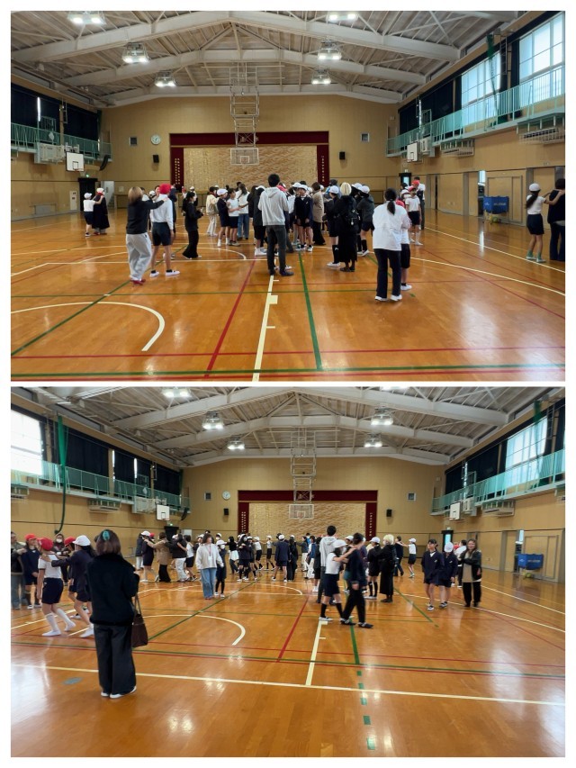 4年生は立志式に使うコサージュづくり、5年生は1年間の振り返りでクイズ大会と合奏、6年生は体育の授業で保護者と一緒に、じゃんけん列車とフリースロー、ドッチボールをしました。