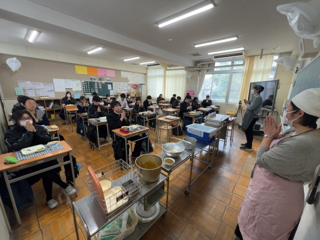 今日の給食では、チキンレバーカレーライスに鶏レバーのペーストを使っています。レバーを食べやすくするために、しょうがやにんにく、セロリを使っています。