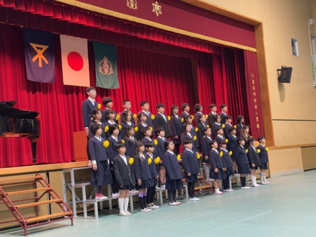 その後、校長先生からのお祝いの言葉があり、次に、子どもたちから「決意の言葉」で合唱やリコーダー演奏、ダンス、そして、感謝の気持ちを手紙で伝えました。