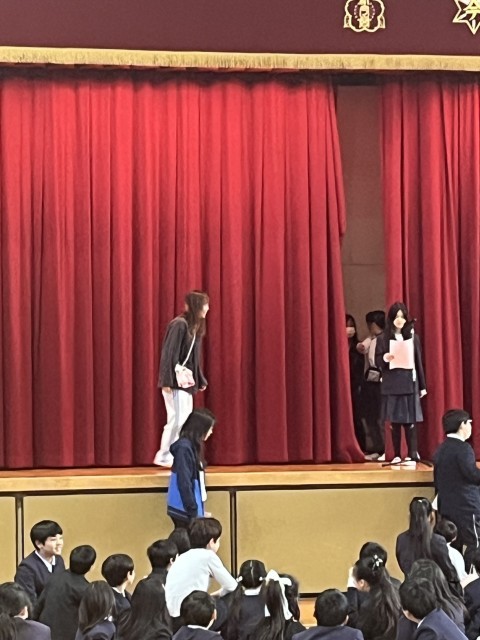 今日の児童集会は「私は誰でしょう」でした。舞台上のカーテンの裏に隠れた先生が声を出して、その声が誰の声か当てていました。隠れた先生は声をいろいろと変化させるので、子どもたちは誰の声なのか一生懸命に考えていました。誰の声かわかったときは歓声が上がっていました。今日の児童集会が今年度最後になります。この一年、集会委員会が中心となって、児童集会を企画してくれました。集会委員会の皆さん、ありがとうございました。