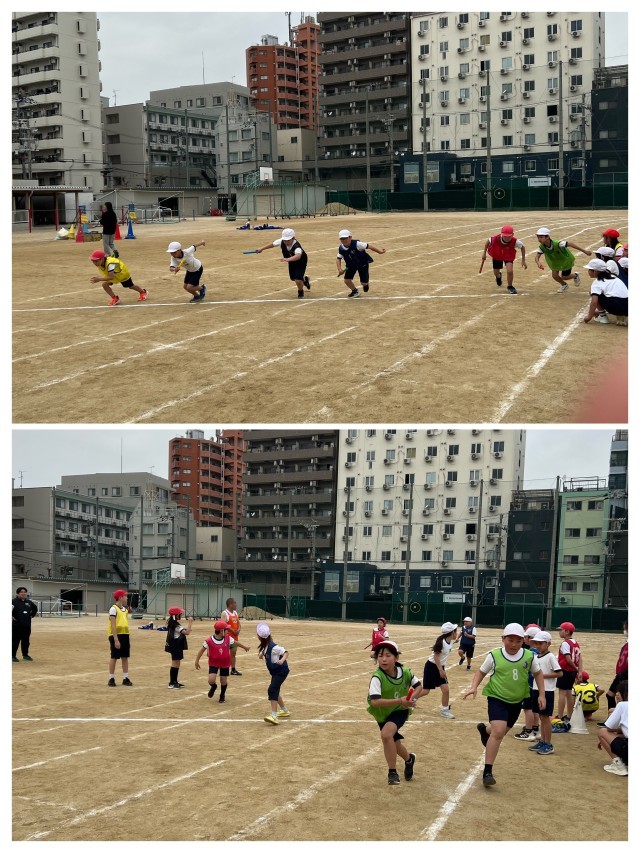 次は、縦割り班対抗リレーです。