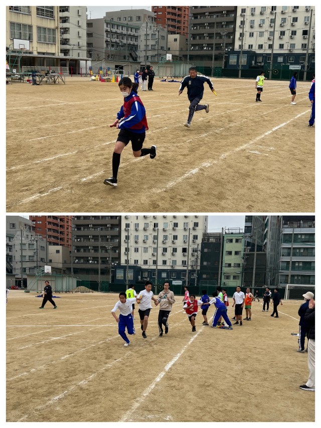 途中、先生方も応援に駆けつけて走者として走りました。