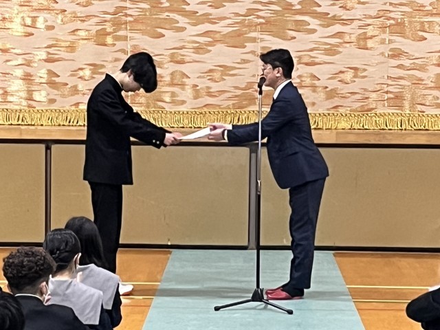 3月9日の中学校全校集会では、初めに、大阪市総合教育センターが主催した、「ICT川柳ポスター」について表彰がありました。中学校 255点の中から、本校の生徒が優秀賞を受賞しました。おめでとうございます。