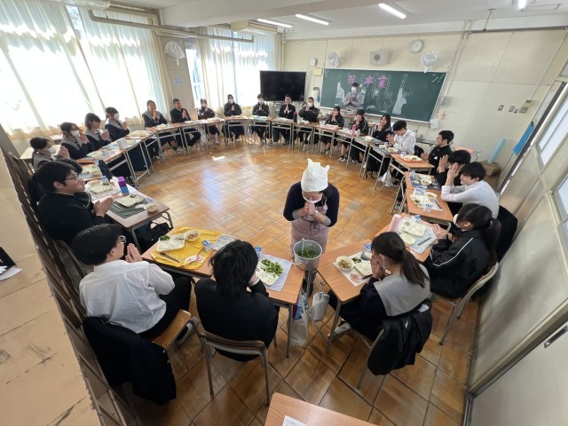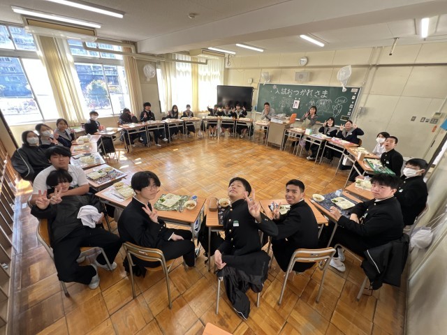 9年生にとっては、最後の給食となるので、みんなで輪になって食べました。今までおいしい給食を用意してくださったことへの感謝や、たくさんのメニューで何が好きだったかなどの話をしつつ、最後の給食を楽しみながら味わっていました。