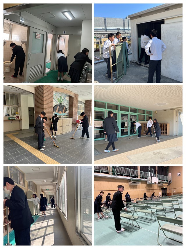 様々な場所のはき掃除やふき掃除、会場設営をみんなの力を合わせて設営しました。