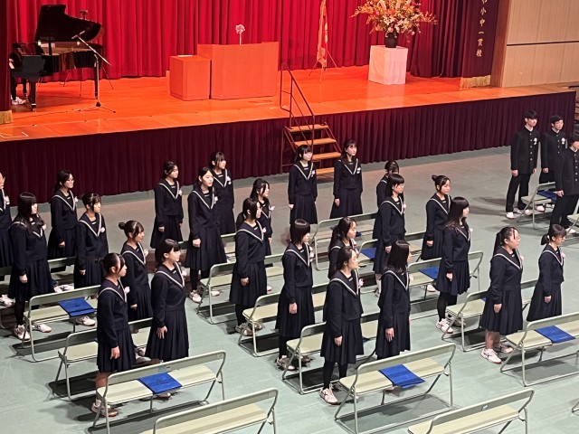 指揮者のリズムに合わせて、ピアノ、みんなが一体となり、素晴らしいハーモニーが響き渡りました。子どもたちはたくさんの思いを胸に歌い切りました。