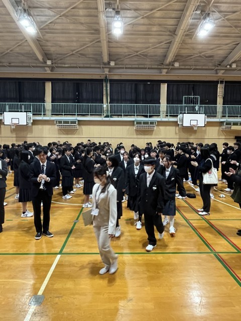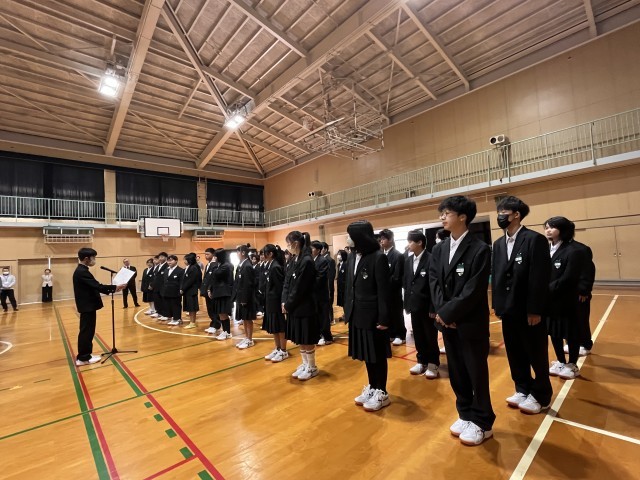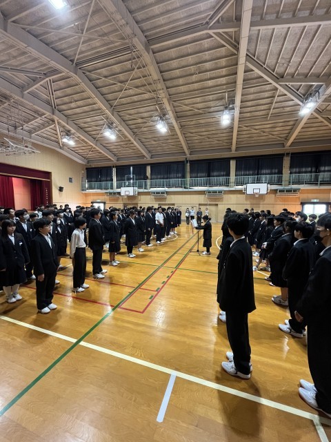 新7年生と8年生、9年生の対面式を行いました。7年生代表の誓いの言葉があり、中学校生活で頑張りたいことを発表することができました。また歓迎の言葉では、先輩として7年生と一緒に活動できることを楽しみにしています。と発表することができました。最後は花道を作って拍手の中を退場していました。