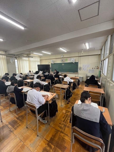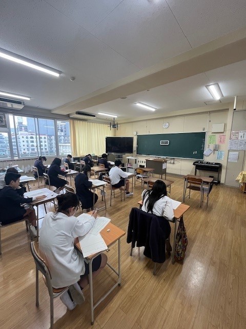 本日は全国学力・学習状況調査の実施日です。6年生と9年生が国語の問題に取り組んでいました。緊張感のある中、子どもたちは自分の力を精一杯出せるように問題と向き合っていました。この後、6年生は算数、9年生は数学のテストに取り組んでいきます。