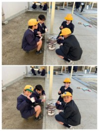 2月12日の1時間目と2時間目を使って、七輪の火おこし体験をしました。初めに、教...