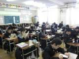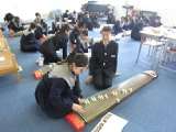 8年生の音楽の学習のようすです。日本の伝統楽器「筝」を使って、「さくら」の練習...
