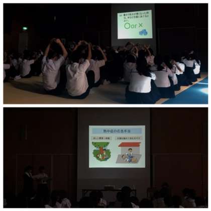 本日の放課後、保健委員を中心に熱中症対策講座を行いました。