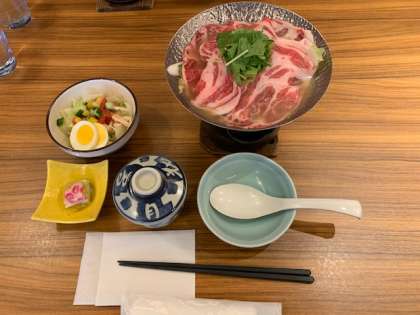 これにご飯と味噌汁、そしてバイキング形式でおかずを取ることができます。アレルギーで代替メニューの人は一部変更となっています。