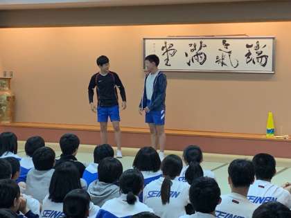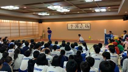 クラス対抗のゲームもあり、暗闇の中で光輝くパフォーマンスあり。写真はコントの一部です。