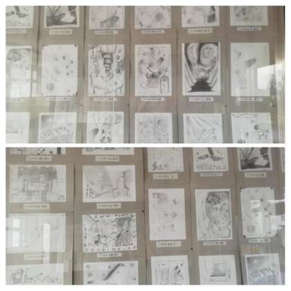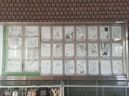 1年生の鉛筆画を玄関ホールに展示しました。