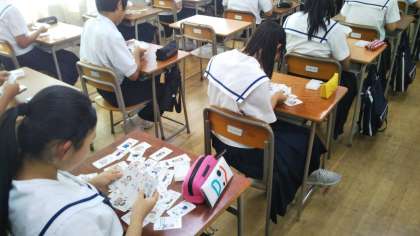 トランプを使って、「人に関心があるか、物事に関心があるか」自分の性格が「積極的か、控えめか」など色んな自己分析ができたと思います。どんな職業につきたいか、決めている人もそうでない人も、まずは自分について知ることが大切です!今日学んだことを進路選択に役立てて下さい。とても盛り上がったクラスもあり、楽しい授業になったようです!