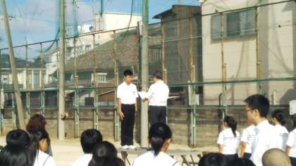 9月7日に行われた大阪市の「ワールドトーク」で、優れた発表をしてくれた人に表彰状を伝達しました。