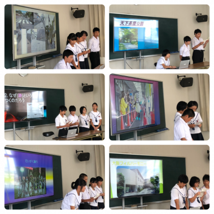 生根神社のだいがく・阪堺電車・天神ノ森天満宮・千本松大橋(眼鏡橋)・大阪フィルハーモニー・天下茶屋公園など、身近にあるものを興味を持って調べ、パワーポイントで分かりやすくまとめていました。