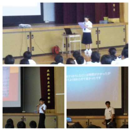 2年生には夏休み中に、理科の課題として自由研究の宿題が出されました。そして、本日は選ばれた生徒による研究発表が行われました。短い準備時間にもかかわらず、それぞれとても興味深い研究発表をしてくれました。