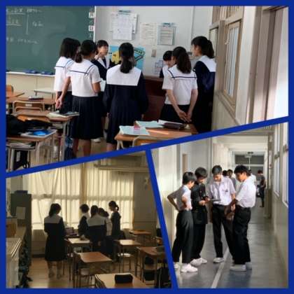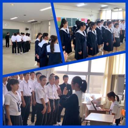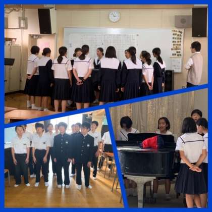 合唱の練習をしています。指揮者や伴奏者を中心に各クラス頑張っています。