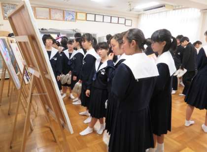 被服室や美術室にも電子黒板で映像が流れていました。映像や作品をしっかり見て、創作意欲が湧いてきましたか??芸術の秋を存分に楽しみましょう!