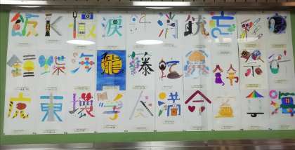 玄関展示ケースに、2年生の文字デザインを展示しました。