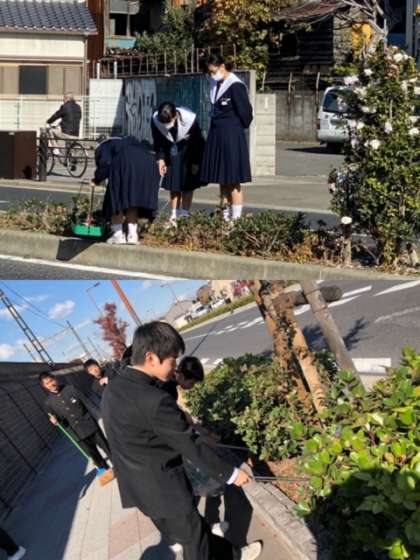 本日テスト後、1.2年生有志とテニス部、理科部、野球部のメンバーで大阪マラソンに向けた学校周辺コースの清掃活動を行いました。