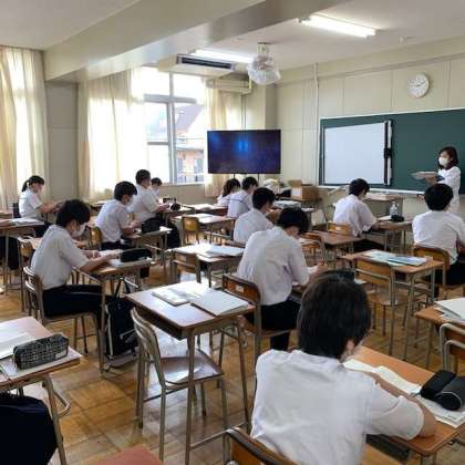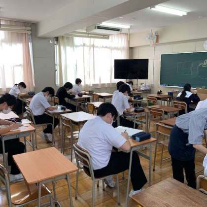本日から3年生で臨時休業中の授業が始まりました。静かに集中して授業を受けていました。
