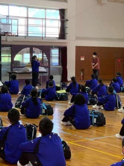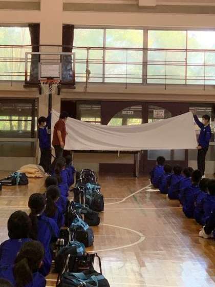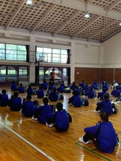 代表生徒の挨拶の後、施設内での注意事項や布団の敷き方の説明を受けました。