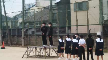 その後、3年生の代表から、焼失した沖縄県の首里城再建のための支援金募金の呼びかけがありました。3年生がなぜこの募金に取り組むのか、その理由も合わせて説明してくれました。