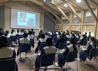 3年生は出発式を経て、バスで長野に向かいました!恵那峡SAで美味しく焼肉弁当を食べ、その後、今日のメインイベントである満蒙開拓平和記念館に着きました。ボランティアの方がガイドをして下さり、わかりやすく解説していただきました。みんな真剣に話を聴けていました。史実から平和を築く姿勢や意識を学べたのではないでしょうか。
