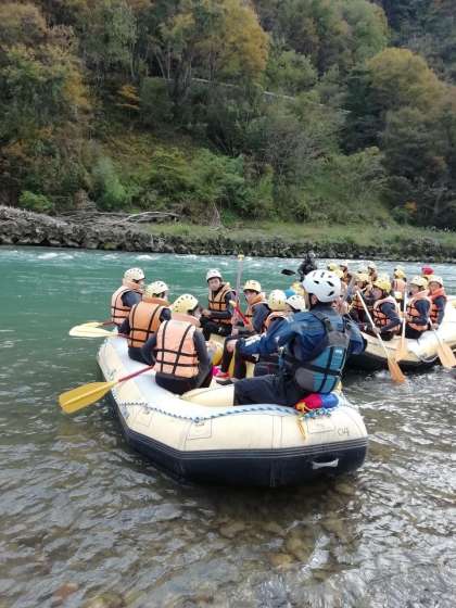 ラフティングはそれぞれのボートで協力し、楽しめたようです。