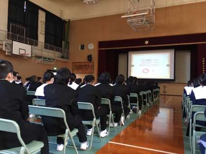 3年生は、助産師の方に性教育の講演をしていただきました。性感染症についての正しい知識や男女の体の違いについて学びました。助産師の方が妊娠8ヶ月だったため、お腹の中の赤ちゃんの心音も聴くことができ、貴重な経験になったと思います。