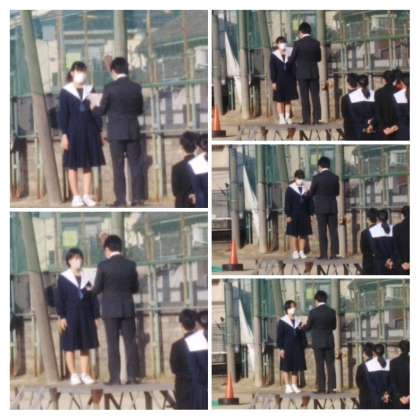 11月30日。きれいな青空の下、全校集会がありました。