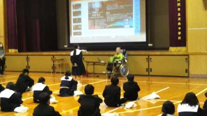 本日、1年生は講師の方に来ていただき障がい者理解学習を行いました。「障がいとはどういうものか」や「挑戦することの大切さ」などをお話ししていただき、貴重な学びとなったと思います。
