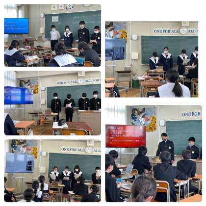 2/24 先日、講師の方々にしていただいた職業講話の内容を、班ごとにパワーポイントにまとめて発表をしました。