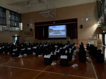 行き先は、伊江島。イメージ通りきれいな海があるそうです。そこで地元の人の協力を得て、民泊に取り組むことが発表されました。一件の家に5人または6人でお世話になります。そのメンバー決めについての目的と手順を説明しました。