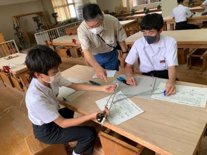 高校の先生たちが来てくださって、「出前授業」をしていただきました。高校の授業に興味を持ち、進路についてもっと意欲的に頑張ってもらえたらありがたいと思います。