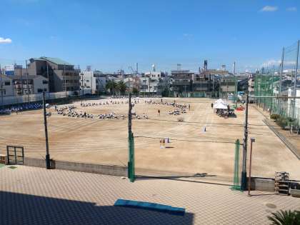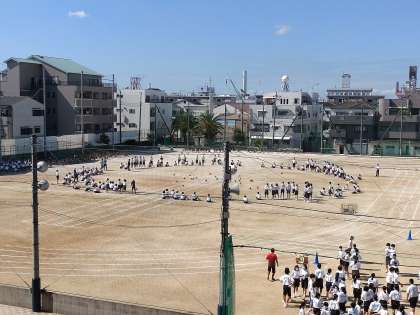 美味しそうな競技の名前は5重に描かれた的がお菓子のバームクーヘンに似ているためです。ルールは内側から5点3点0点2点1点と点数に分かれた5重の円に各クラスが投げたボールの止まった数の合計点数で競います。