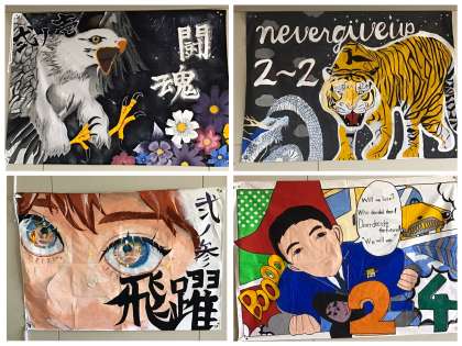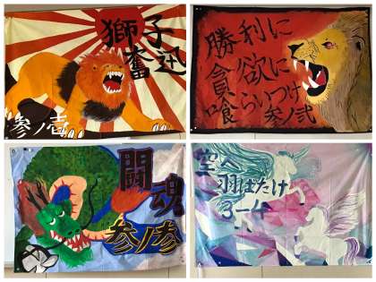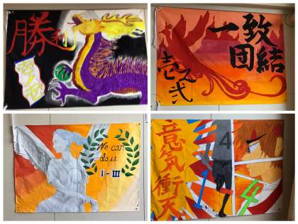今日のために各学級で応援旗を作成しました。開会式では各学級の前で力強く掲げられました。どれも力作ばかりです。