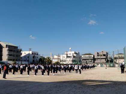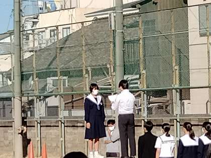 10月18日、秋晴れの下、全校集会を行いました。