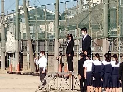 校長先生からは、「先週の運動会では全校生徒が力を合わせて、立派な運動会を作りあげることができました。今日からは、また次の目標に向かって進んでいきましょう。」という話がありました。