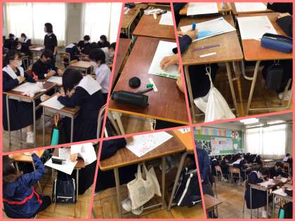 2年生は文化祭に向けてモザイクアートの作成に取り組んでいます。テーマは「おきなわ」。