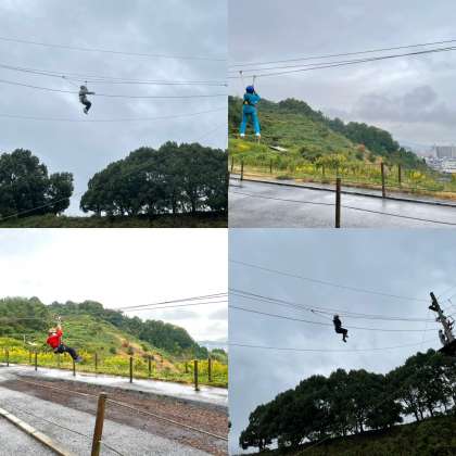 なかなか難しいアスレチック。ドキドキしながらも果敢に挑戦しています。