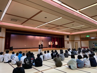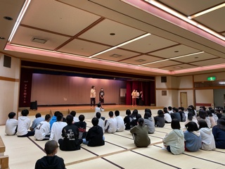 夜のお楽しみ会が始まりました。この日のために準備を頑張ってくれたレク係りの宣誓で開始です。